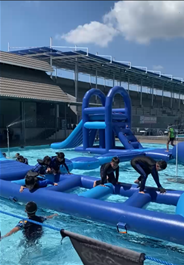 Kemudian Anak-anak dibagi ke dalam kelompok lintas kelas untuk mengikuti berbagai kegiatan seperti flying fox, mimbo playland, menaiki mini swinger dan dragon coaster, menonton 6D dan yang tak kalah serunya adalah water bounce (permainan air). Tawa riang dan semangat kebersamaan terasa sepanjang kegiatan berlangsung.