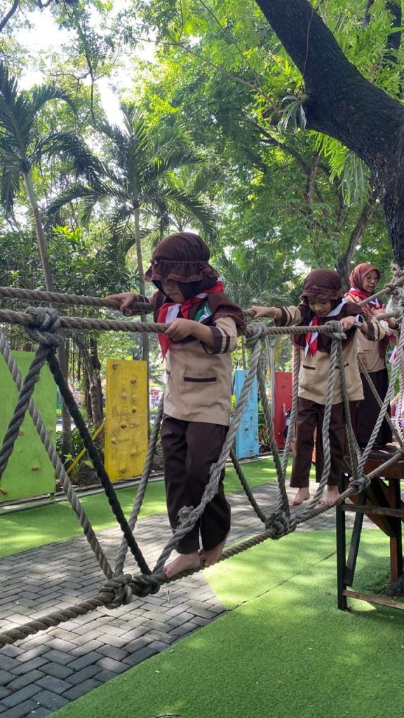 Pada kesempatan ini, Ananda TK A dan TK B Al-Azhar Syifa Budi mengikuti kegiatan Pramuka Kreatif Prasiaga di Taman Flora Bratang Surabaya. Kegiatan ini bertujuan untuk mengembangkan kemampuan fisik motorik, sosial, serta keterampilan berpikir anak sejak dini.