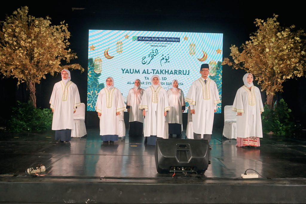 Prosesi wisuda dilanjutkan dengan penobatan secara simbolis kepada seluruh siswa TA dan TKB. Satu per satu anak dipanggil naik ke panggung untuk menerima tanda kelulusan dari kepala sekolah TA-TK Al Azhar Syifa Budi oleh Udhiah Sholihah, S.Pd, Ananda disambut pelukan hangat dari mama papa. Setelah itu, siswa kelas TA menampilkan lagu “Guruku Tersayang” dengan keceriaannya sebagai bentuk rasa cinta kepada guru. Disusul dengan penampilan kelas TKB yang menyanyikan lagu “Alhamdulillah Oh Thank You Allah” dengan penuh semangat menggambarkan rasa syukur atas ilmu dan kebersamaan selama di sekolah.